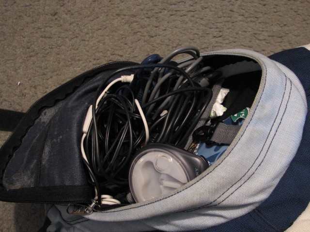 I cleaned up her apartment and took my time to simulate the time needed to travel from my apartment in Hoboken into the city. Meredith asked if I was hungry and I think I answered something like, "I am, but I just want to go home and shower." I realized I didn't really answer her question, but I am running on fumes and haven't eaten since 5 last night. Anything out of my mouth may not make sense at this point. A bit out of it, but I was still together enough to fix the network problem relatively quickly. I had lent her my spare router before so she gave it back since everything seems working now. I couldn't squeeze the router back in my bag because of all the crap I had with me. They were wondering what the hell is in my bag. I started taking stuff out to rearrange my bag so I had room to fit the router. Taking up the most room is my brother's headphones. It comes with a giant wooden box. Also taking up a lot of space are the amplifier for the headphones and my overnight lunchbox. I think I've explained to her my overnight lunchbox so she SHOULD have known when she saw it that I spent the night somewhere. They couldn't quite understand why I had headphones in a wooden box and an amplifier for headphones. "Seems like a lot of work," she said. "Don't you have smaller ones you could bring?" I said, "Yeah, the smaller ones are in the front of my bag." That just confused them more. I added, "Yeah, you don't want to know where I was. I'm just going to go home now and shower."